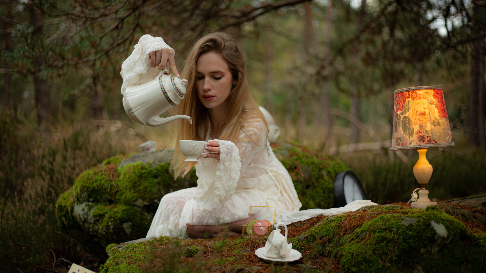 I use a soft green, warm palette that create an immersive atmosphere that draws the viewer in, almost as if the forest itself is sinking you deeper into its mysterious embrace. This visual approach enhances the dreamlike quality of the story while grounding it in a natural and relatable setting.