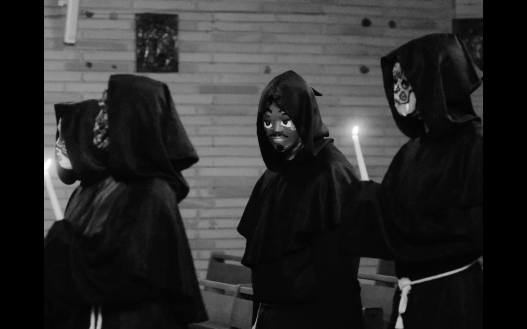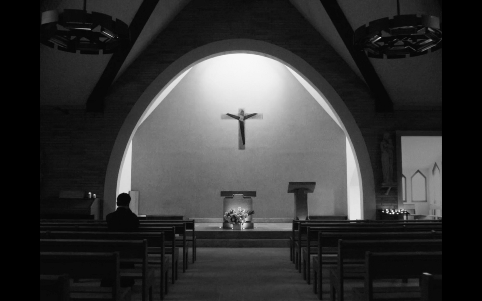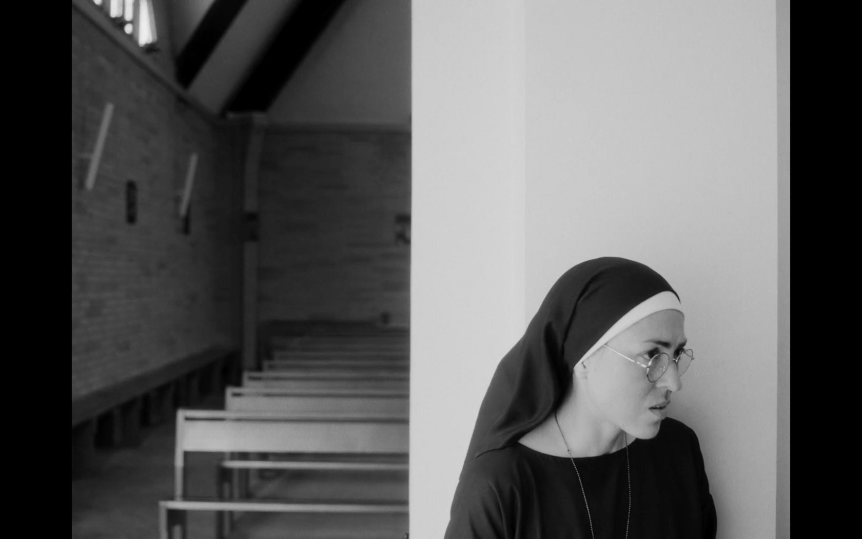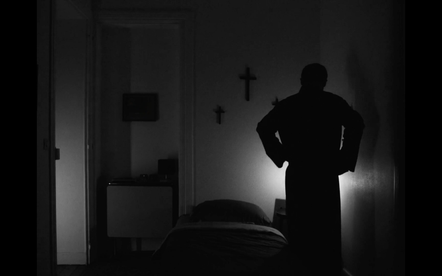 The film is shot in high-contrast black and white, reflecting the duality of light and darkness within Santiago's soul and the stark moral choices he must face. The sharp use of shadows creates a sense of mystery and unease, while the stark lighting accentuates the cold, quiet atmosphere of the convent.